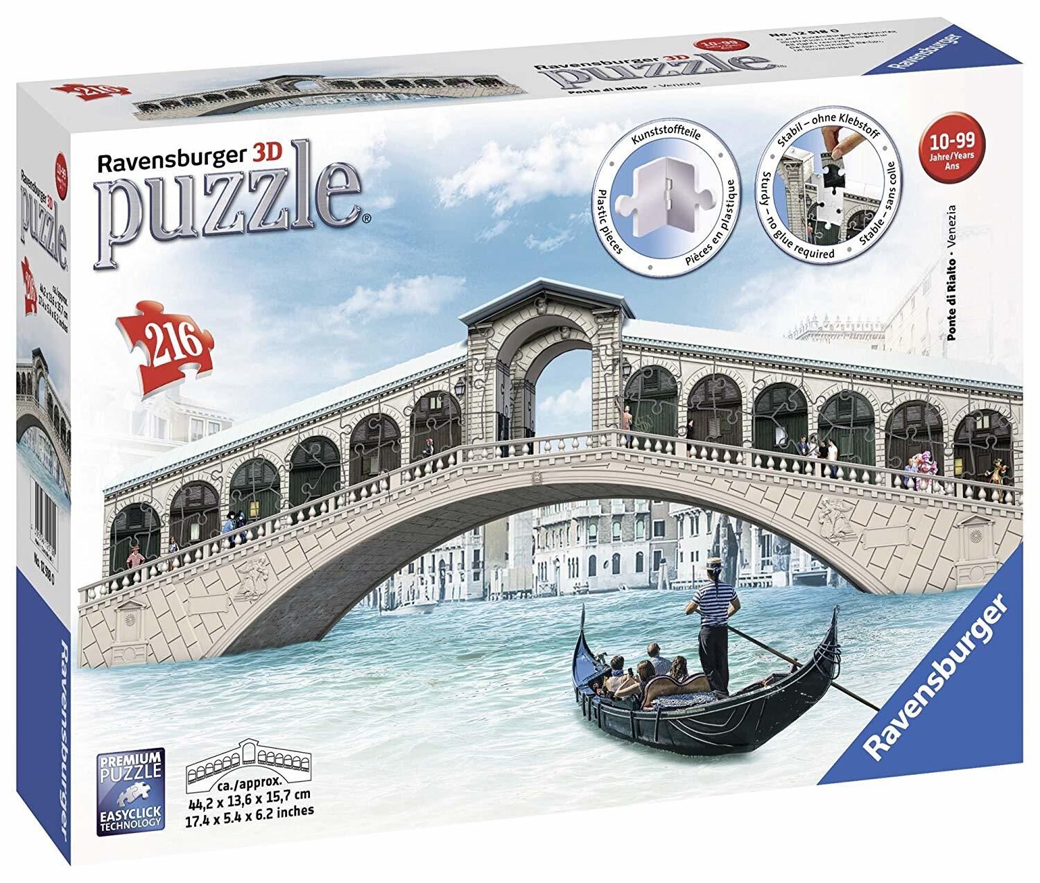 Transport yourself to the romantic canals of Venice with Ravensburger's stunning 3D puzzle of the iconic Rialto Bridge!