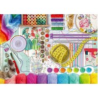 This jigsaw invites you to immerse yourself in a colourful display of sewing supplies strewn across a table surface. Blissfully glare-free details are waiting to be unveiled, from intricate buttons and vibrantly coloured spools of thread to a pin cushion and crochet needles in all sizes. As you assemble all 500 extra thick cardboard pieces, you'll not only enjoy the satisfaction of completing an engaging challenge but also unlock the therapeutic benefits of this mindful screen-free activity.
