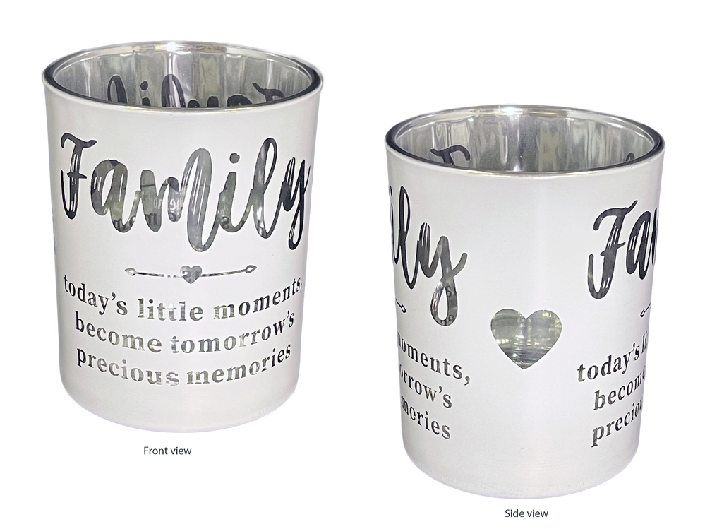 - Candle Holder Reads: "Family. Today's little moments become tomorrow's precious memories".