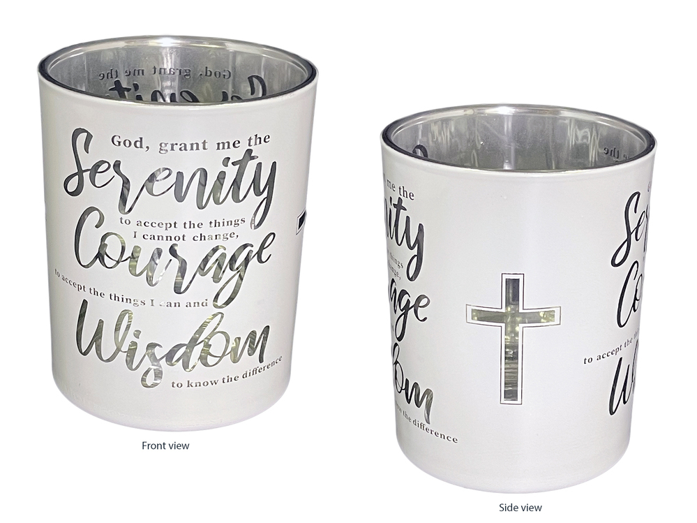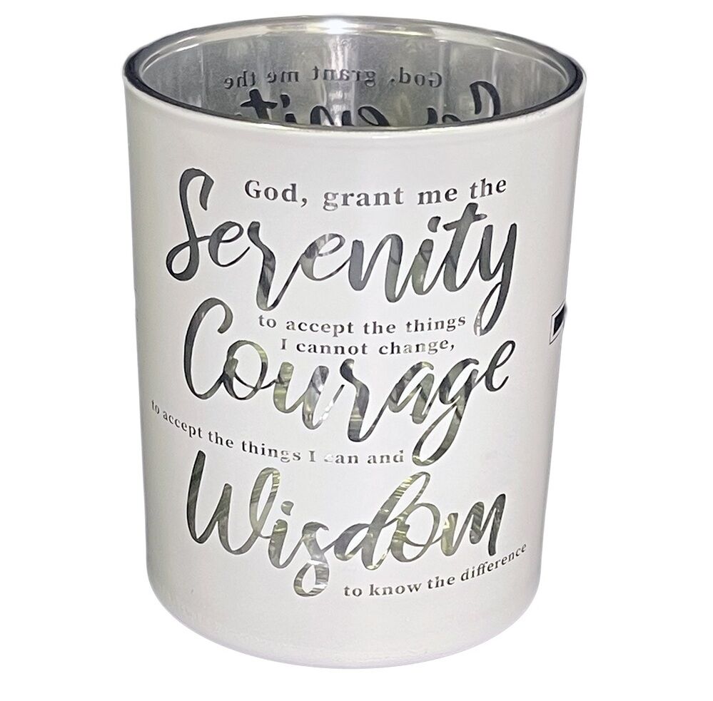 - Candle Holder Reads: "God grant me the Serenity to accept the things I cannot change, Courage to accept the things I can and Wisdom to know the difference".