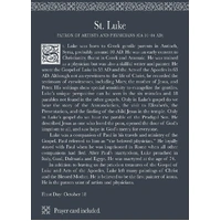 Most wonderful St. Luke, you were animated by the Heavenly Spirit of Love. In faithfully detailing the humanity of Jesus in your Gosepl, you also showed His Divinity and His genuine compassion for all human beings. May the Holy Spirit, instructor of the faithful, help me to understand Christ’s words and faithfully apply them in my life. Amen."