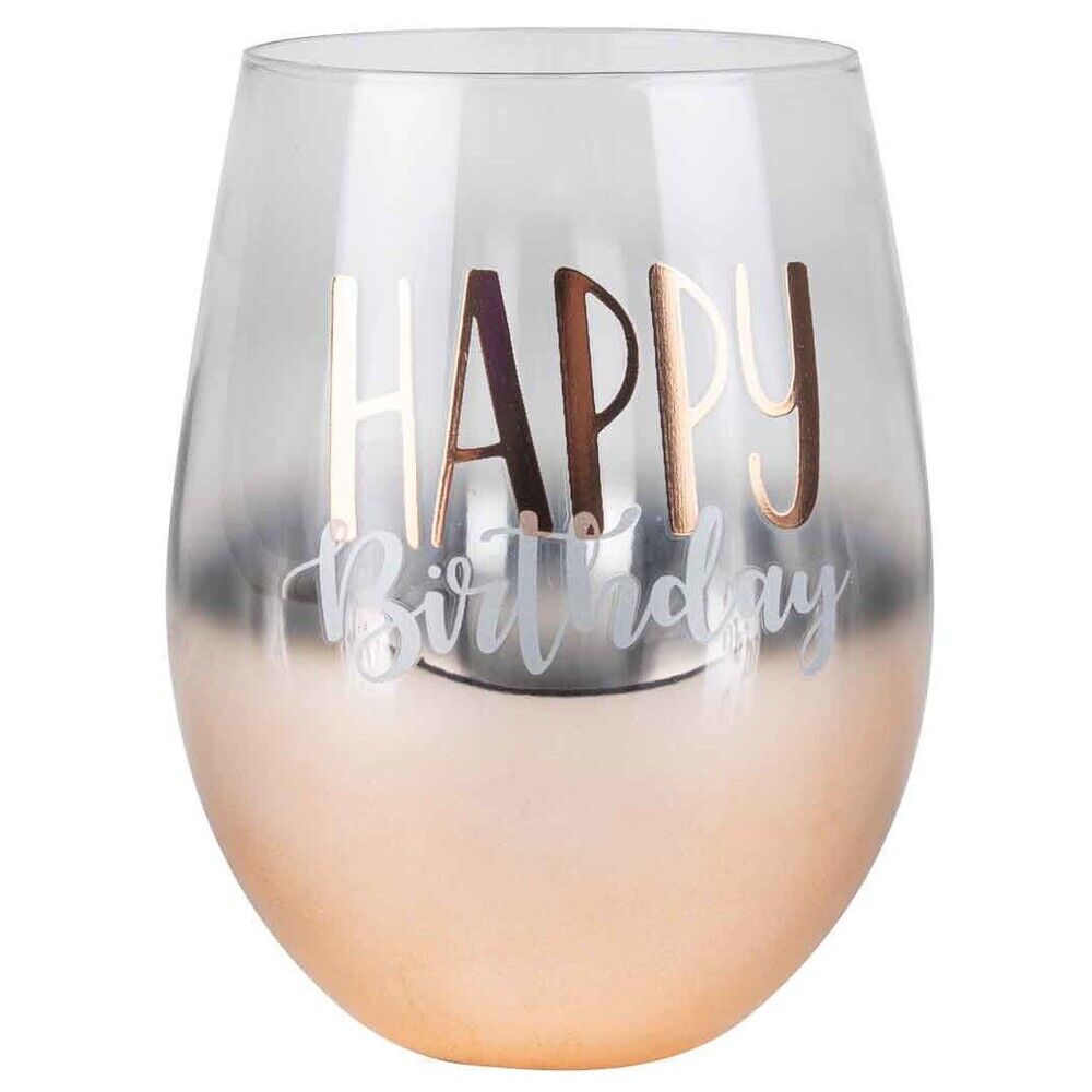 ROSE GOLD OMBRE STEMLESS HAPPY BIRTHDAY WINE GLASS
