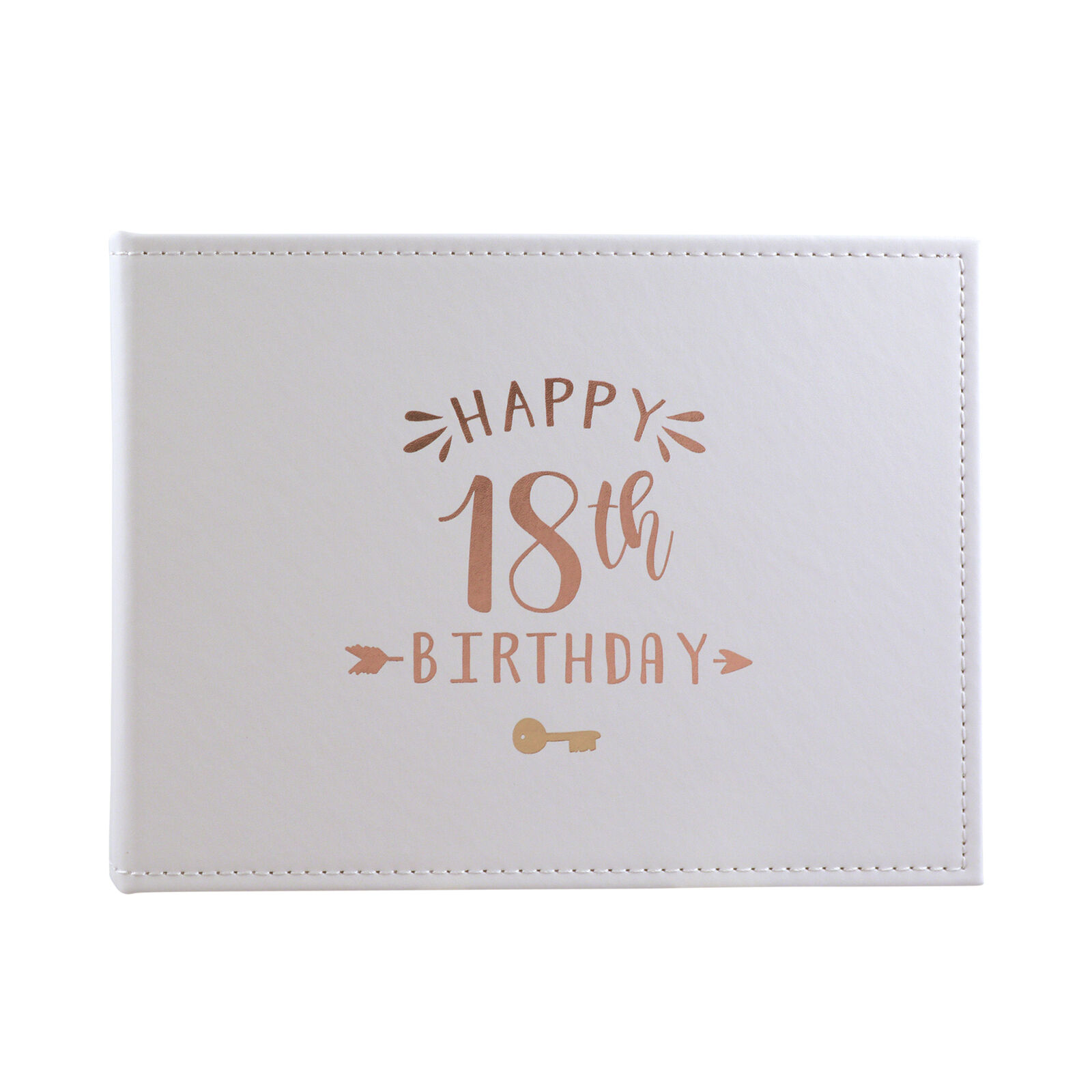 • Hard Cover with Rose Gold text that reads "Happy 18th Birthday".