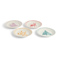 Add a playful splash of festive charm to your table with this Set of 4 1815 Christmas Plates. Perfect for serving Christmas treats, desserts, and buffet bites, each 16cm porcelain plate features a stylised motif - a green Christmas tree, orange mistletoe, purple bird, and red reindeer - framed by delicate line elements in matching colourways.