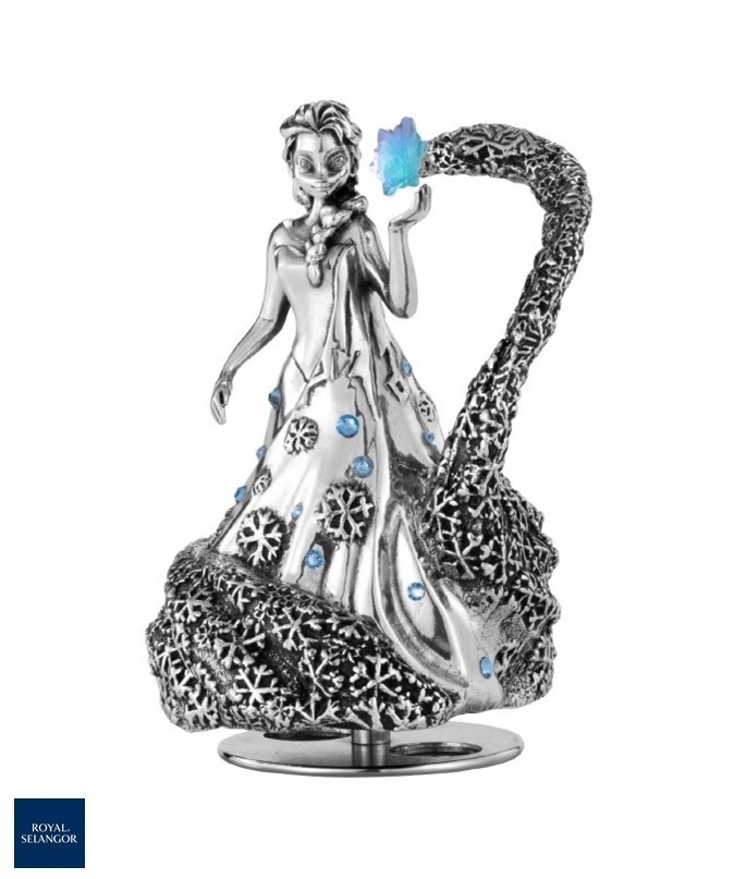 Ostracised for accidentally revealing paranormal powers she’s kept hidden her whole life, Princess Elsa of Arendelle declares her freedom in Let It Go, making snow and ice around her obey her bidding. In this limited edition, icy blue Swarovski crystals sparkle on Elsa’s gown, whilst a large glittering snowflake crystal hovers above her palm.