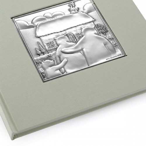 Inspired by the popular children's story Goldilocks and The Three Bears, this elegant photo album contains 15 sheets/30 pages and comes complete with protective tracing paper and photo corners. A pewter foil featuring an image of the three bears coming home after a day in the woods decorates the pastel green cover. An illustration of Goldilocks adorns the first page along with a "This Book Belongs To" cartouche.
