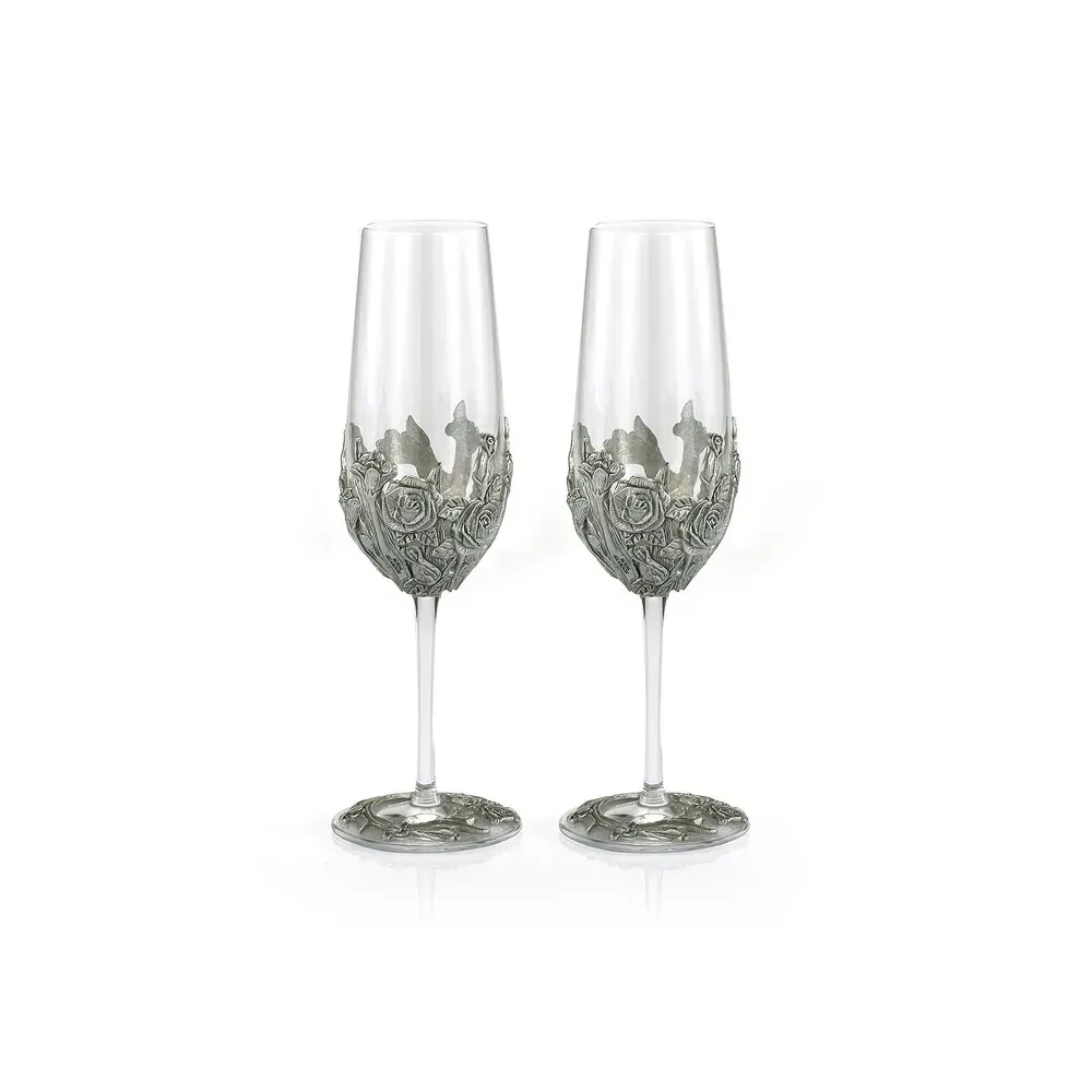 ROYAL SELANGOR ROSES - CHAMPAGNE FLUTE PAIR