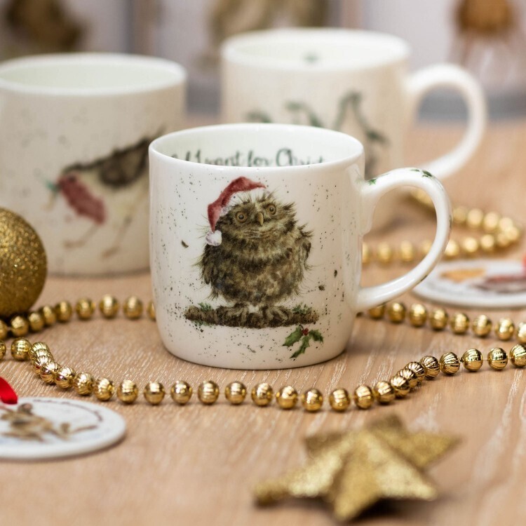 Royal Worcester's fine bone china mugs come in a wonderful array of designs. The Country Set collection by Wrendale Designs features a delightful range of countryside animals, each wonderfully illustrated in the house style. This mug features a cute owl wearing a christmas hat.