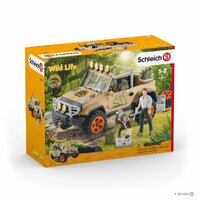 Time for an action-packed adventure with ranger David and his trusty companion, the young chimpanzee! Accompany these two on their wild journey through the jungle! Secure the extendable winch hook to the tree trunk to pull it out of the mud! Change a tyre or refuel the 4x4 vehicle with the petrol canister! Save injured animals with the veterinary equipment! Help them out the dense jungle and bring them to the CROCO research station! Set with 4x4 vehicle, ranger David, chimpanzee and lots of great accessories. The Schleich® figurines are exceptionally detailed, lovingly painted and allow children to play and learn at the same time. The set is the ideal addition to the 42350 CROCO jungle research station.