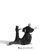 The Wizarding World Voldemort with Nagini and Bellatrix figurine from Schleich is a magical model trio of Harry Potter’s nemesis, The Dark Lord, his loyal serpent, and dedicated Death Eater follower, Bellatrix Lestrange. Voldemort is sculpted standing with his arm extended, wearing sweeping black robes which highlight the stark contrast of his pale skin. Nagini the Burmese Python is sculpted slithering with her head raised and her mouth open, ready to attack. Bellatrix is sculpted with her wand ready, wearing all black robes and her characteristically unkempt black head of hair tilted slightly. Play at an imaginary Battle of Hogwarts and face Harry Potter himself.