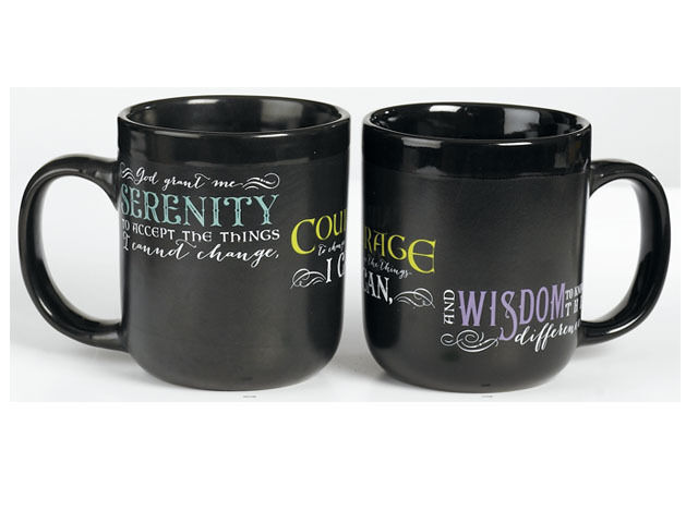 - Mug reads: "God grant me SERENITY TO ACCEPT THE THINGS I cannot change, COURAGE To change The Things I CAN AND WISDOM TO KNOW THE difference."