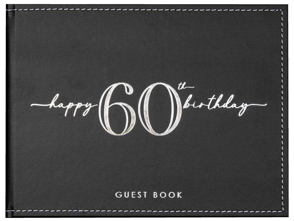 Hard cover in black with silver text that reads "Happy 60th Birthday".