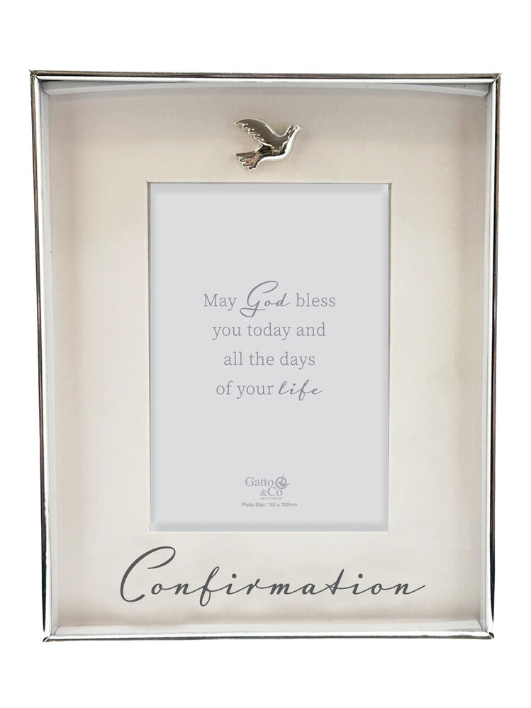 This beautiful photo frame will make the perfect Confirmation gift. It is intricately detailed with a silver dove above space for a photo and 'Confirmation' below.