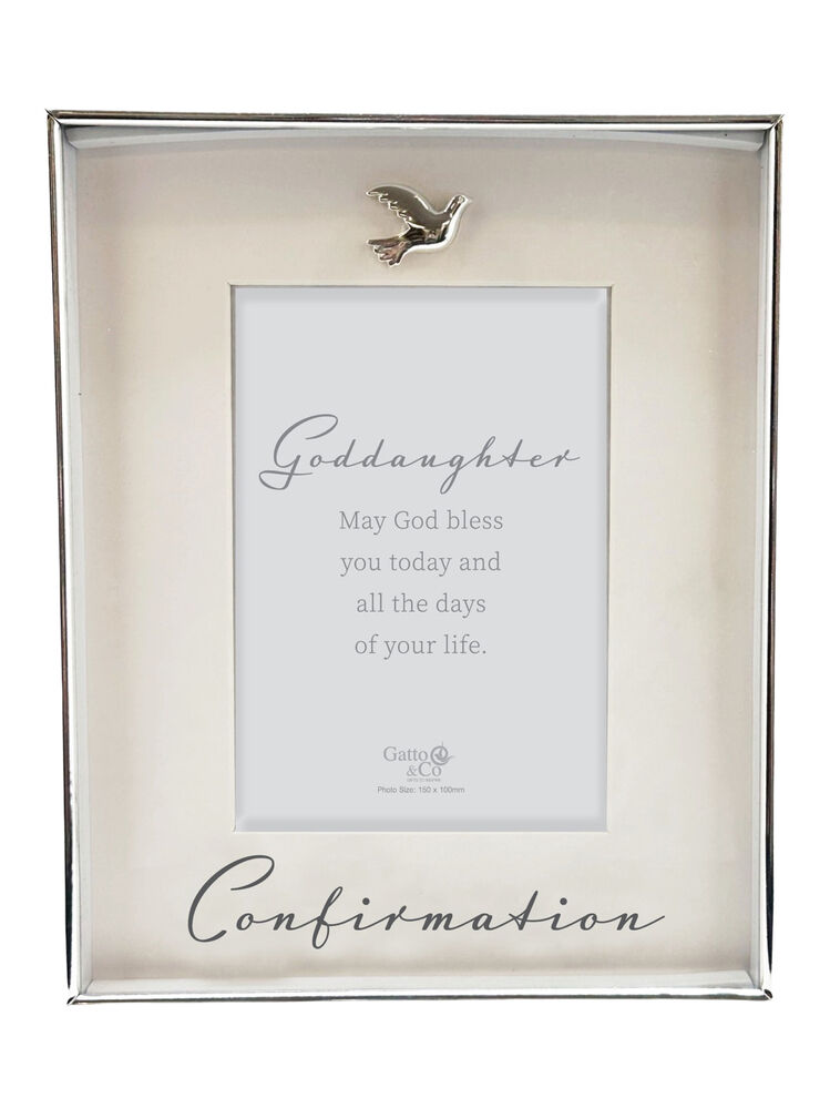 SILVER CONFIRMATION PHOTO FRAME - GODDAUGHTER DOVE MOTIFF