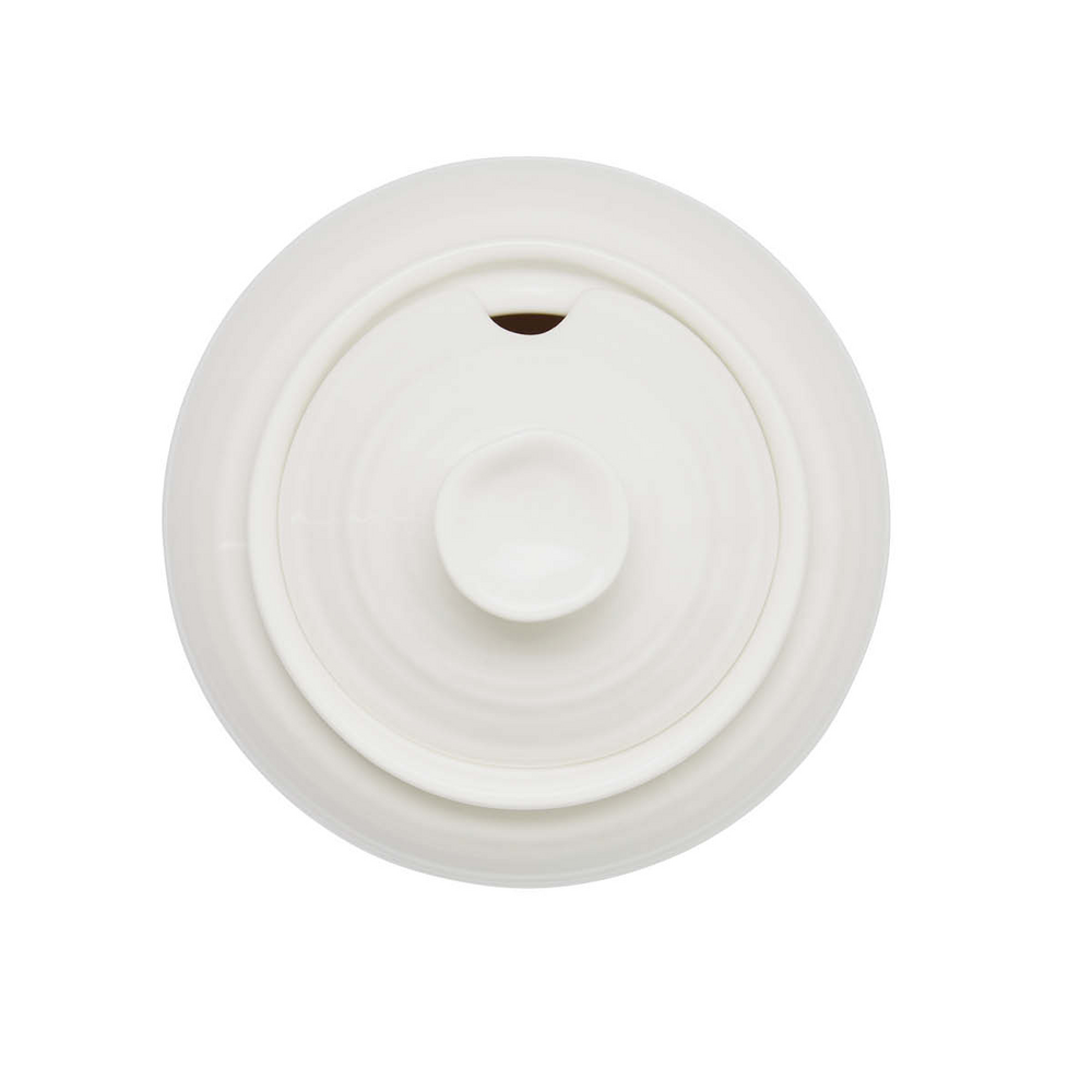 Discover the ideal sugar pot in Sophie Conran's Portmeirion collection. With a charmingly rustic white finish and a hand-thrown aesthetic, this lidded sugar bowl complements your tea set. The innovative lid design includes a small hole to secure a teaspoon, preventing any moisture from affecting your sugar. Complete your sophisticated tea trio by pairing it with the Sophie Conran teapot and cream jug. The beautifully rippled design of Sophie’s White Porcelain Covered Sugar Bowl is wonderfully tactile with an organic, handmade feel.