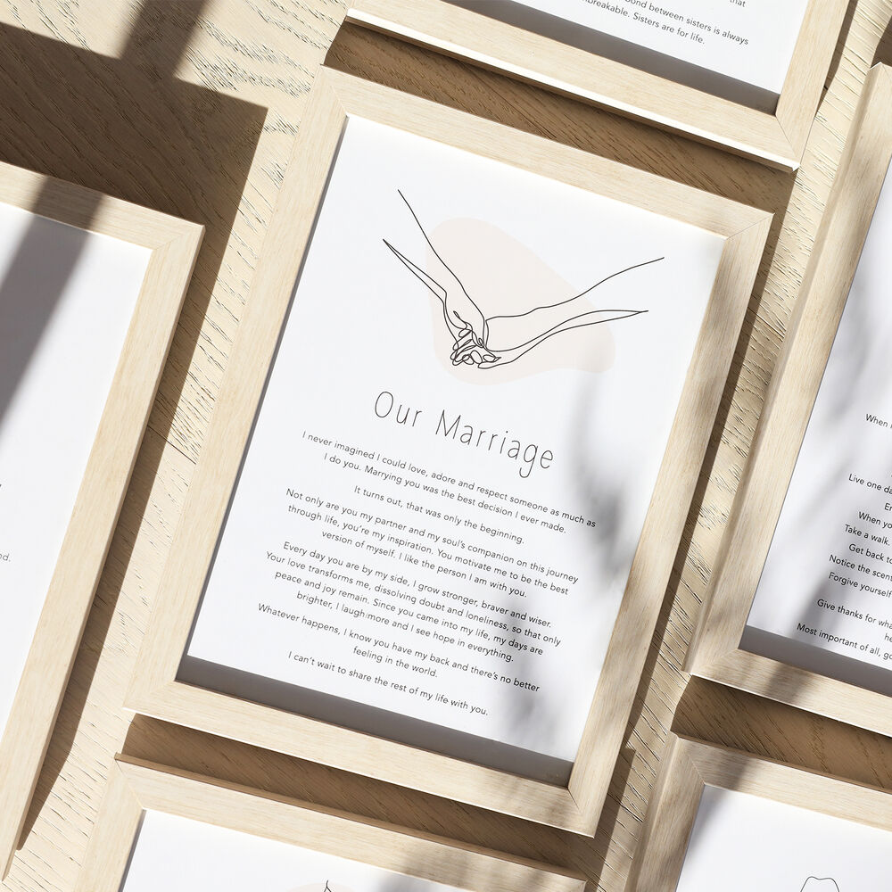 -A4 print featuring heartfelt messages framed in a wooden-look frame