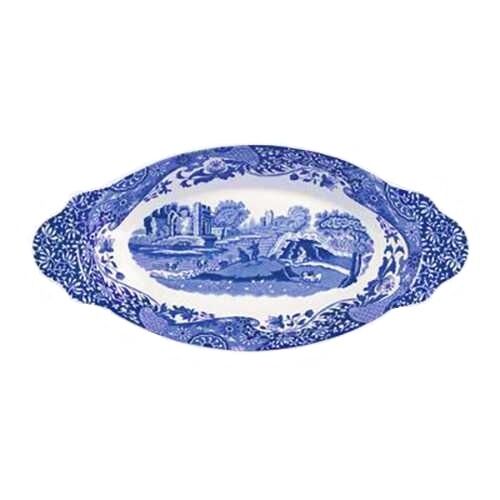Spode's extraordinary Blue Italian design is known for bringing timeless style and effortless charm to your kitchen. The piece features a finely detailed 18th century Imari Oriental border encompassing a stunning scene inspired by the Italian countryside. Made with the most premium quality porcelain, this bread tray by Spode is decorated with the iconic Blue Italian design.