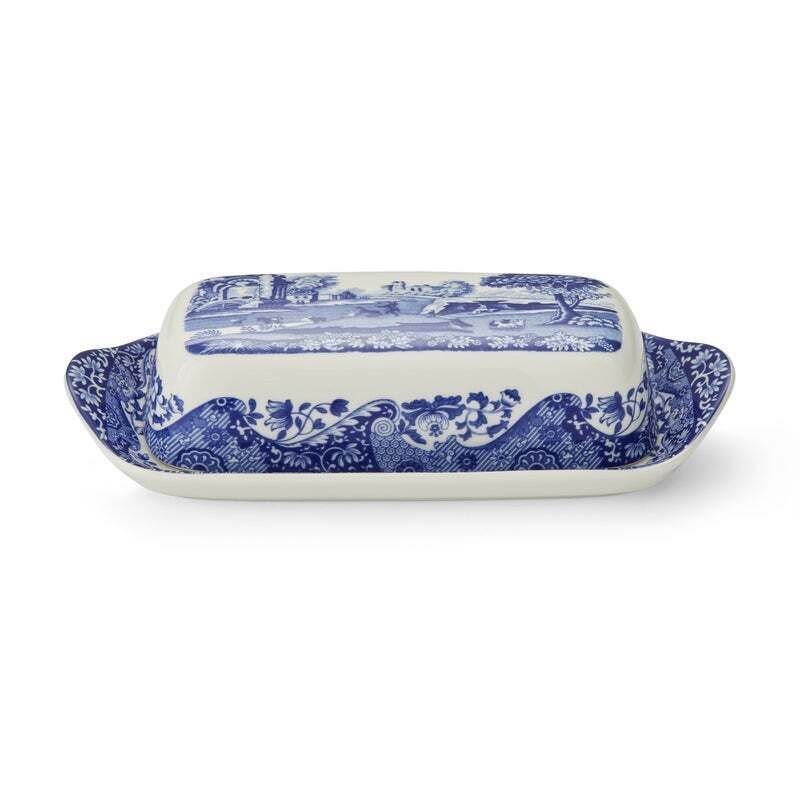This Blue Italian butter dish from Spode is perfect for keeping your butter fresh. The butter dish features a finely detailed 18th century Imari Oriental border encompassing a stunning scene inspired by the Italian countryside, making it a beautiful addition to your kitchen or to accompany your afternoon tea setting. Crafted for modern day living, this piece is dishwasher, microwave, freezer and oven safe.