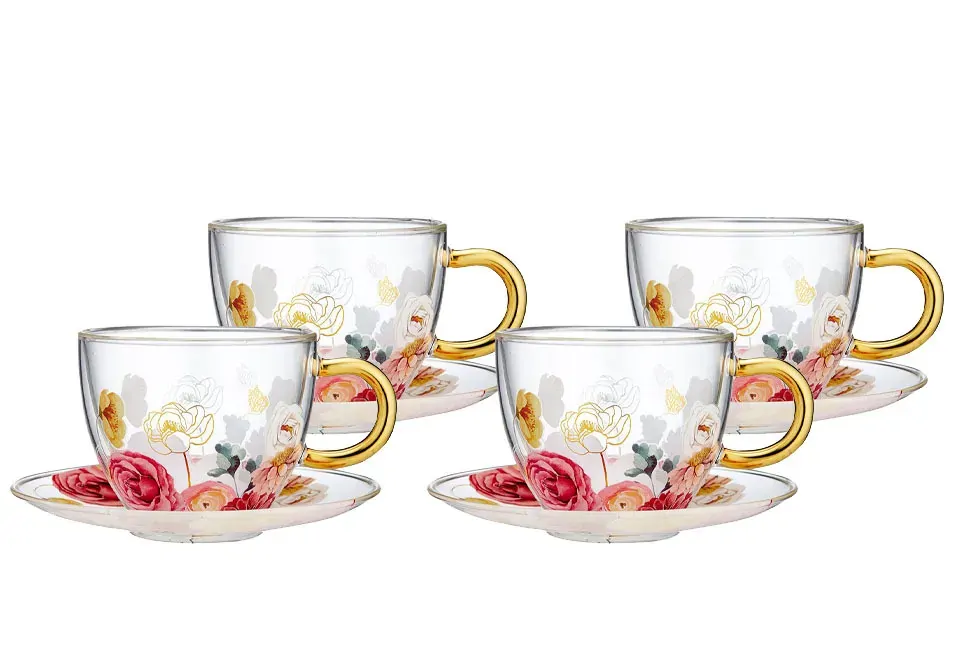 SPRINGTIME SOIREE - DOUBLE WALLED GLASS CUP & SAUCER 4 PACK