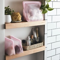 The Stand-Up Stasher folds flat when not in use for ultimate portability and space saving. This non-toxic bag is made of pure platinum food-grade silicone and is sous vide, microwave, dishwasher, and freezer safe. It’s patented Pinch-Loc™ seal also makes it an ideal makeup or personal care product container, especially on the go. Part of a 3 size Stand Up series for all your pantry and toiletry needs.