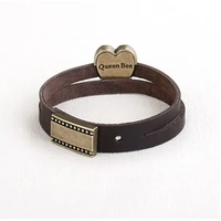 STORY HEART LEATHER BRACELET - BLACK QUEEN BEE