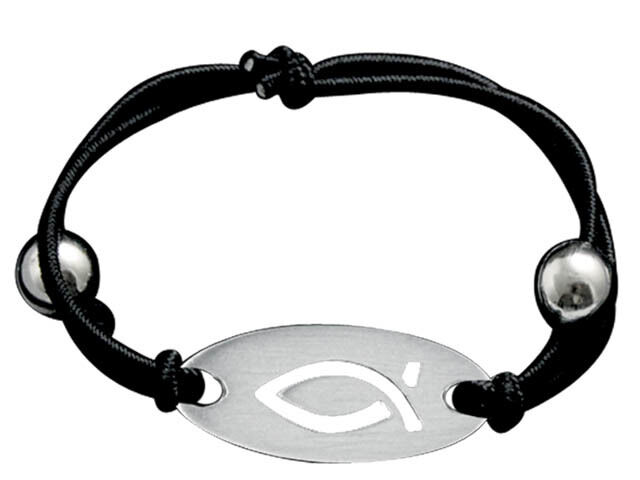 This black stretch bracelet features a silver-coloured medallion in the middle with a cutout of the ichthys (fish). It would make the perfect gift for a special occasion such as First Holy Communion or Confirmation.