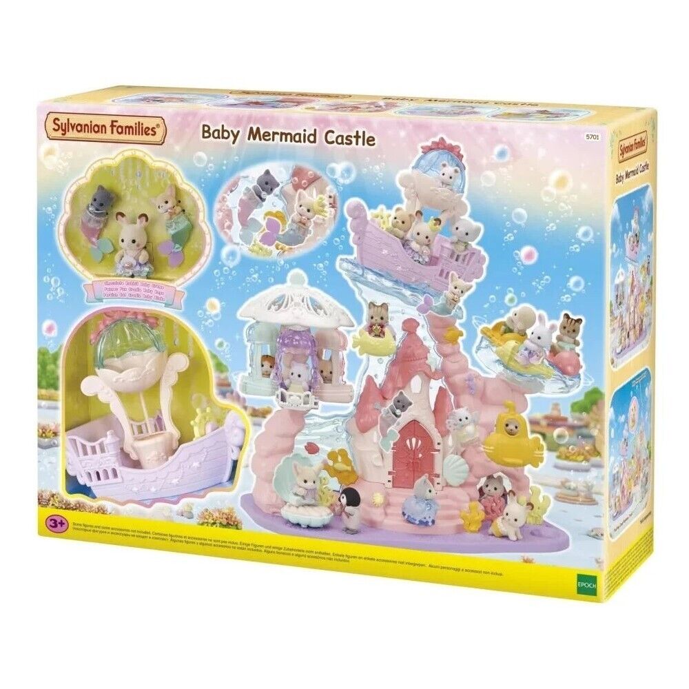 Set featuring an undersea-themed amusement park, along with three baby figures. Includes a beautiful Mermaid Castle, "Aqua-Go-Round" Ride, Jellyfish Swings and plenty more for baby and cradle baby figures to ride in! The figures are all wearing special mermaid-themed outfits. Use the "Mermaid swim holder" to make it look like the babies are swimming! The Dream Ship can be removed and played with on its own. Suitable for use as a display piece, with room for over 50 baby figures.