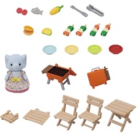 The BBQ Picnic Set features Elephant girl Miriam in an exclusive outfit, along with accessories to enjoy pretend barbecue play. Have your figure cook food on the grill and eat at the table and chairs. Includes colourful plates and ingredients. The table and chairs can be folded up. The barbecue lid can be opened and closed.