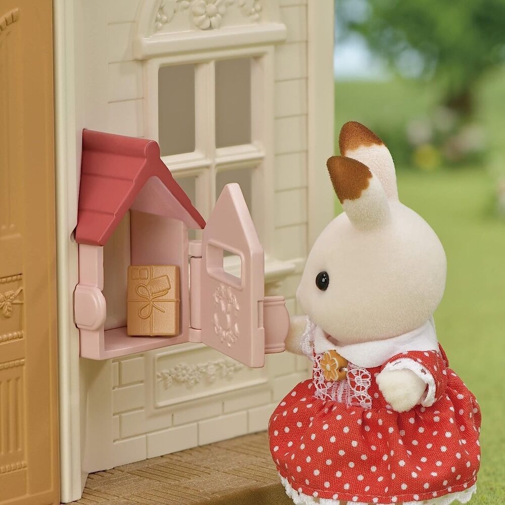 The Red Roof Cozy Cottage is the perfect Starter House. This set contains a house, furniture and Chocolate Rabbit Figure. The kitchen also comes with fun accessories! Bake an apple pie, or pour water from the tap. Use the post box and parcel to send and receive mail!