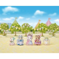 Includes: five baby figures - Snow Rabbit baby, Sophie, Husky baby Linnea, Striped Cat baby Apricot, Marshmallow Mouse cradled baby Mary and Persian Cat cradled baby Briana.