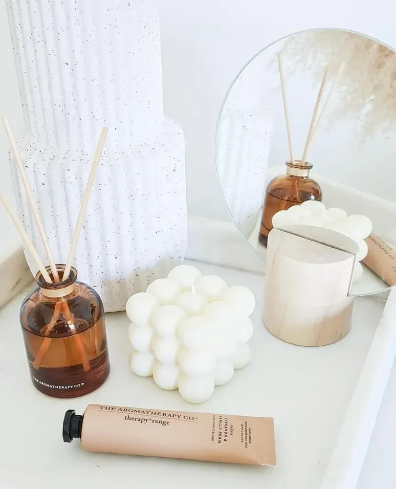 Savour the moment and indulge your cravings with this warm, sweetly spiced aroma. Distinguished by a combination of soft oriental notes, the sweet spices of Cinnamon Leaf essential oil and the rich warmth of Vanilla Bean will fill your room with this deeply sensuous fragrance.