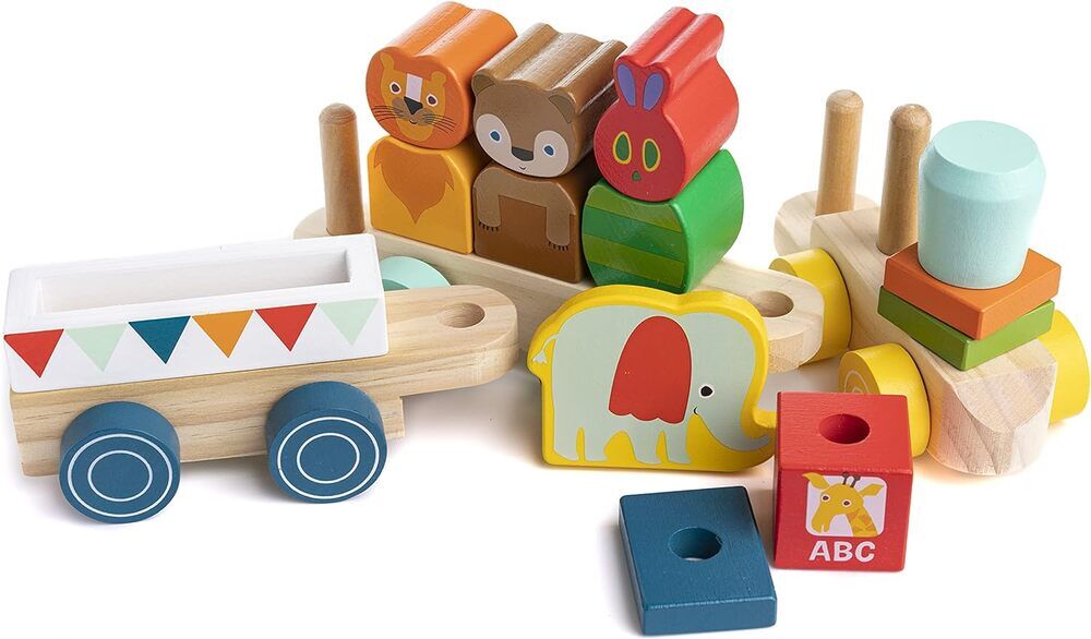 Inspired by the classic book The Very Hungry Caterpillar, this 12 piece wooden train toy will keep little ones entertained. The wooden playset features super cute wooden pieces including a lion, caterpillar, bear and elephant and other colourful pieces. This playset promotes playful learning with endless ways to play.