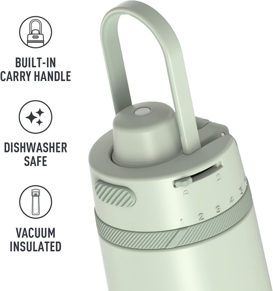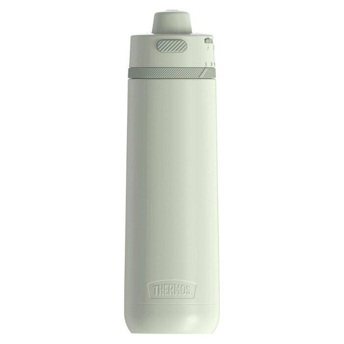 The 24oz Stainless Steel Water Bottle GUardian from THERMOS keeps you in the game. Drinks stay cold for 18 hours with a stainless steel, vacuum insulated bottle that includes a rotating hydration meter. Equipped with a hygienic covered spout, locking cap and carry handle, this bottle has you completely covered from hikes uphill to treks downtown.