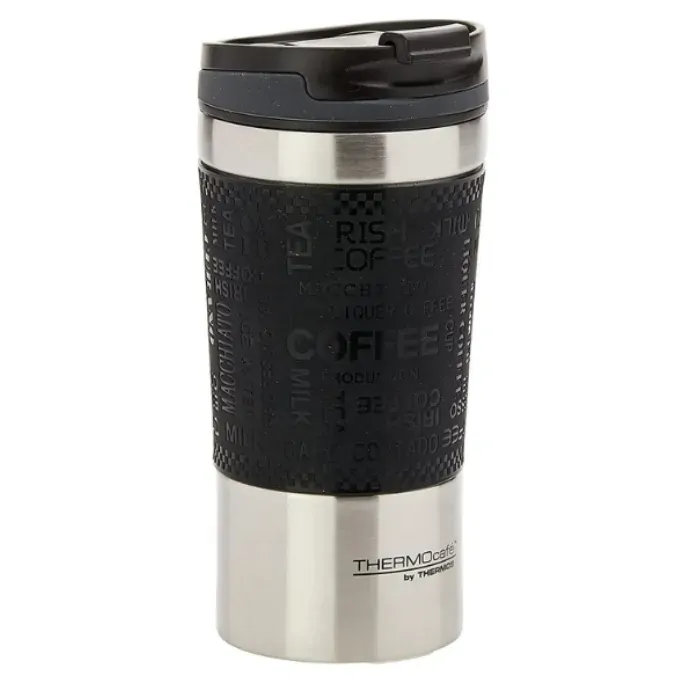 THERMOcafé by THERMOS travel tumblers are a great alternative to single use coffee cups. The double wall vacuum insulation will keep your coffee hotter and fresher for longer. With a spill-resistant lid, a flip-top opening and rubber hand-grip, these cups are designed for convenient use while you're on the go. Help reduce waste and enjoy your coffee in a reusable tumbler. Convenient size will fit most car cup holders. Capacity: 350ml.