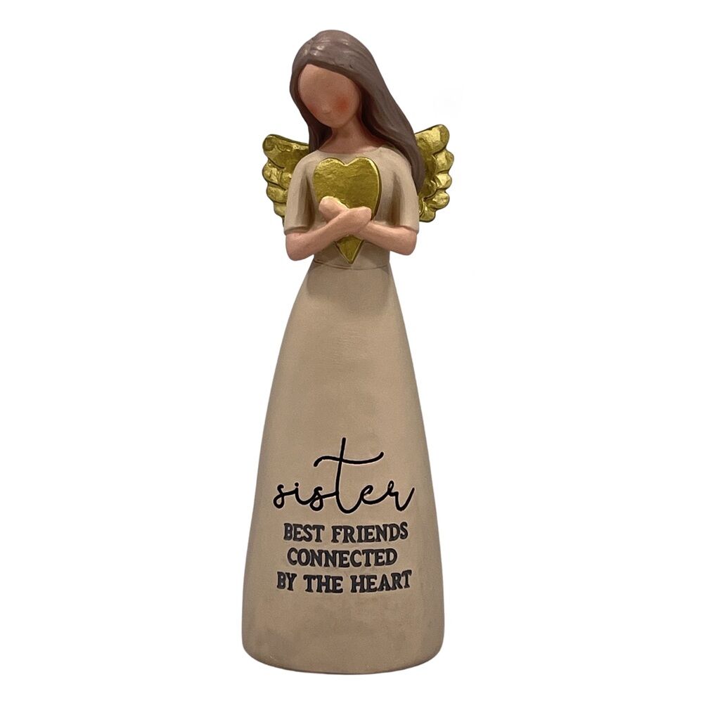 A beautiful resin angel for your sister, inscribed with wording "SISTER Best friends connected by the Heart".