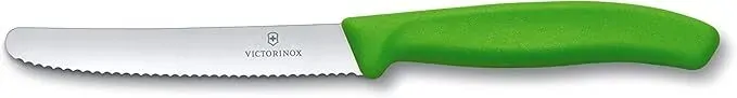 - x1 Swiss Classic Tomato and Table Knife, wavy edge, 11cm, light green