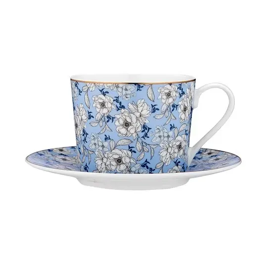 VINTAGE FLORAL - DUSTY BLUE CUP & SAUCER