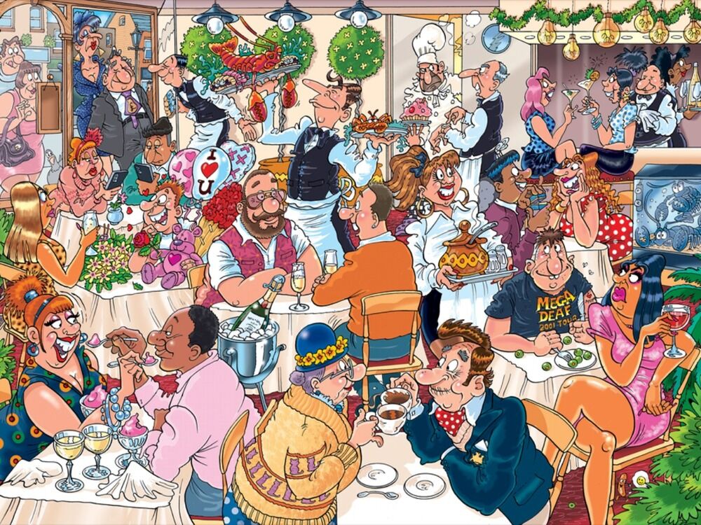 This mystery concept challenges you not to piece together what you see on the box, but what happens next in the lively bistro scene. Busy couples, laughter, and a bustling kitchen set the stage for Date Night. As orders flood in and the waiter navigates through the chaos with a lobster and crab platter, be ready for the unexpected splatter!