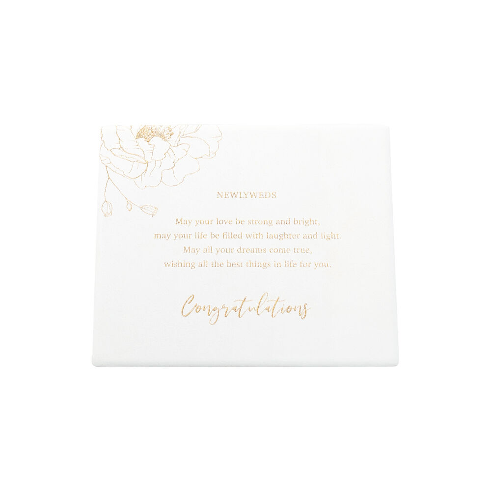 - Plaque Reads: 'Newlyweds. May your love be strong and bright, may your life be filled with laughter and light. May all of your dreams come true, wishing all the best things in life for you. Congratulations.'