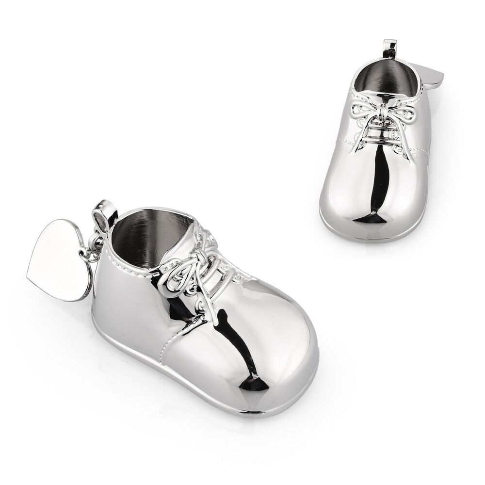 A lovely keepsake, it features an engraving plate the fits on the sole of the shoe plus a detachable heart pendant.