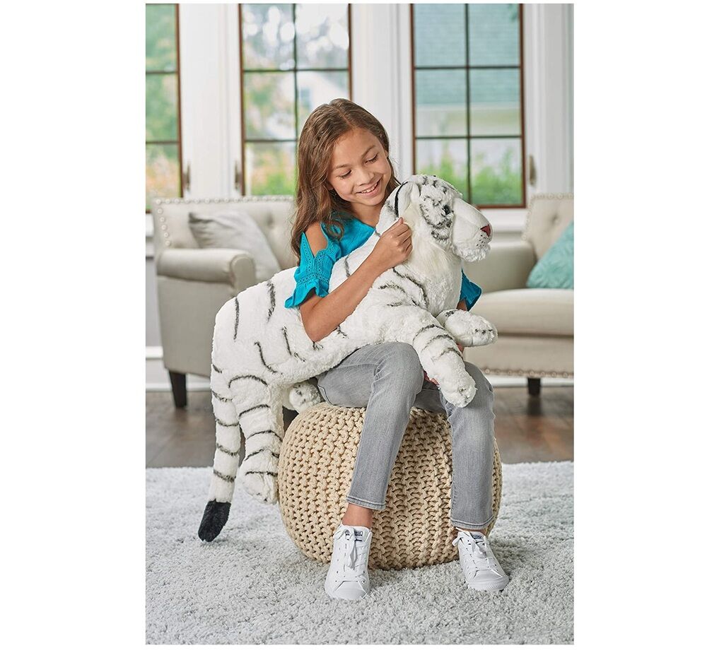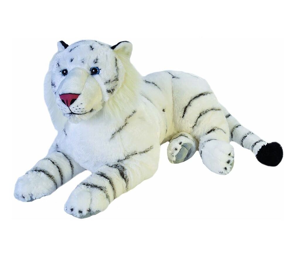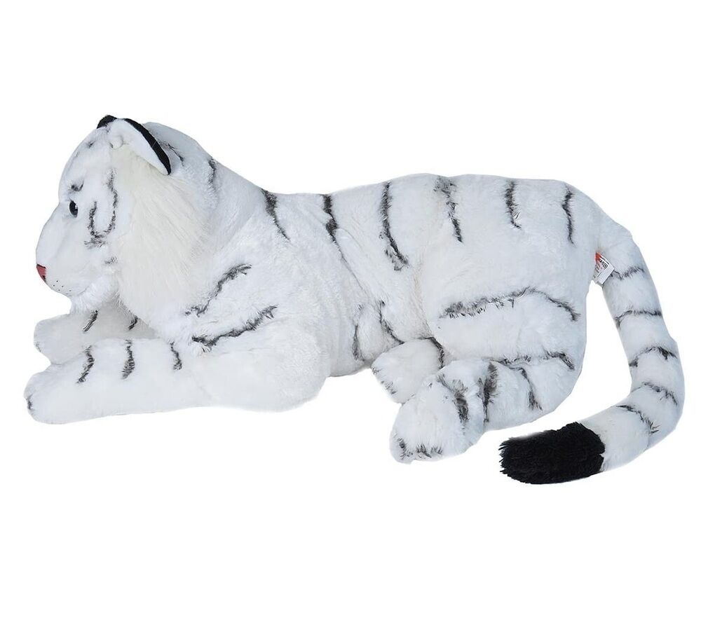 You will love to cuddle with this soft and adorable Jumbo White Tiger. Each highly detailed Jumbo White Tiger comes with lifelike facial and authentic features. With its ultra-plush stuffing, the Jumbo White Tiger is so cute and huggable.