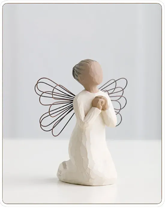 Artist Susan Lordi hand carves each original Willow Tree figure. Expression is revealed through gestures only.... a tilt of the head placement of the hands a turn of the body. The simplicity of form and the absence of facial features signify Willow Tree. It is Susan's hope that these pieces be meaningful to both giver and receiver.