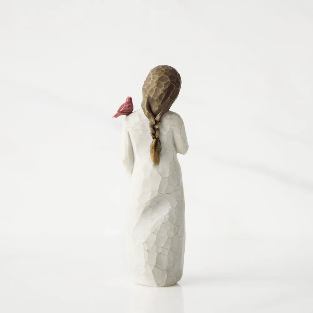 A gift of comfort and healing for one who has lost, or is very far from, a loved one. A reminder that those we love are always with us, in our memories and in our hearts. A red cardinal visits this figure as a small uplifting symbol of remembrance.