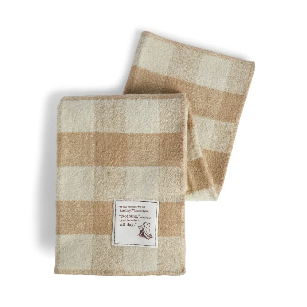 WINNIE THE POOH GIFTING - NOTHING ALL DAY TAN PLAID BLANKET