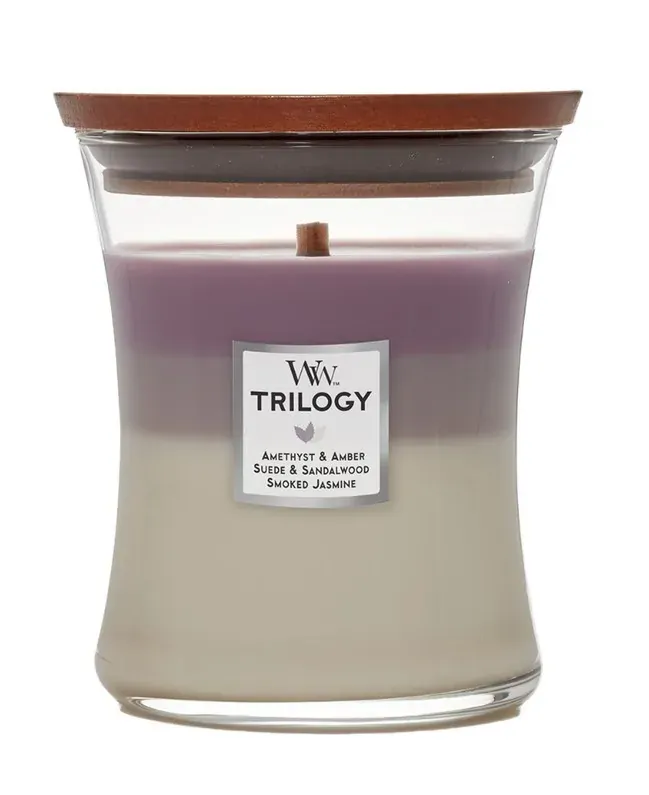 The Trilogy Candle allows you to enjoy three harmonious fragrances and the soothing sound of a crackling wooden wick. Each layer of wax contains a different fragrance that compliments the next so as the candle burns, each fragrance melts into the next, creating a unique new scent.