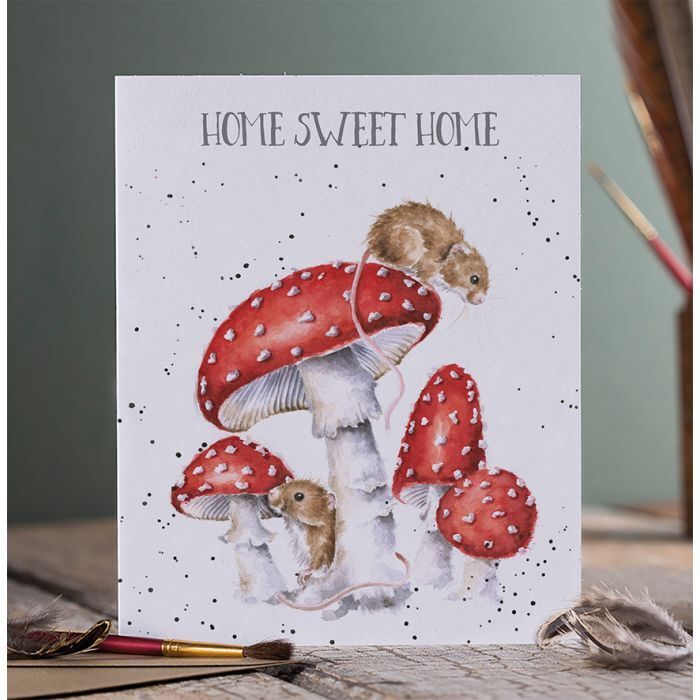Celebrate a new home with this lovely mouse card that reads 'HOME SWEET HOME'. The card is printed on beautiful textured board sourced from the Lake District and is supplied wrapped, with a kraft recycled envelope. This card is blank inside for your own message.